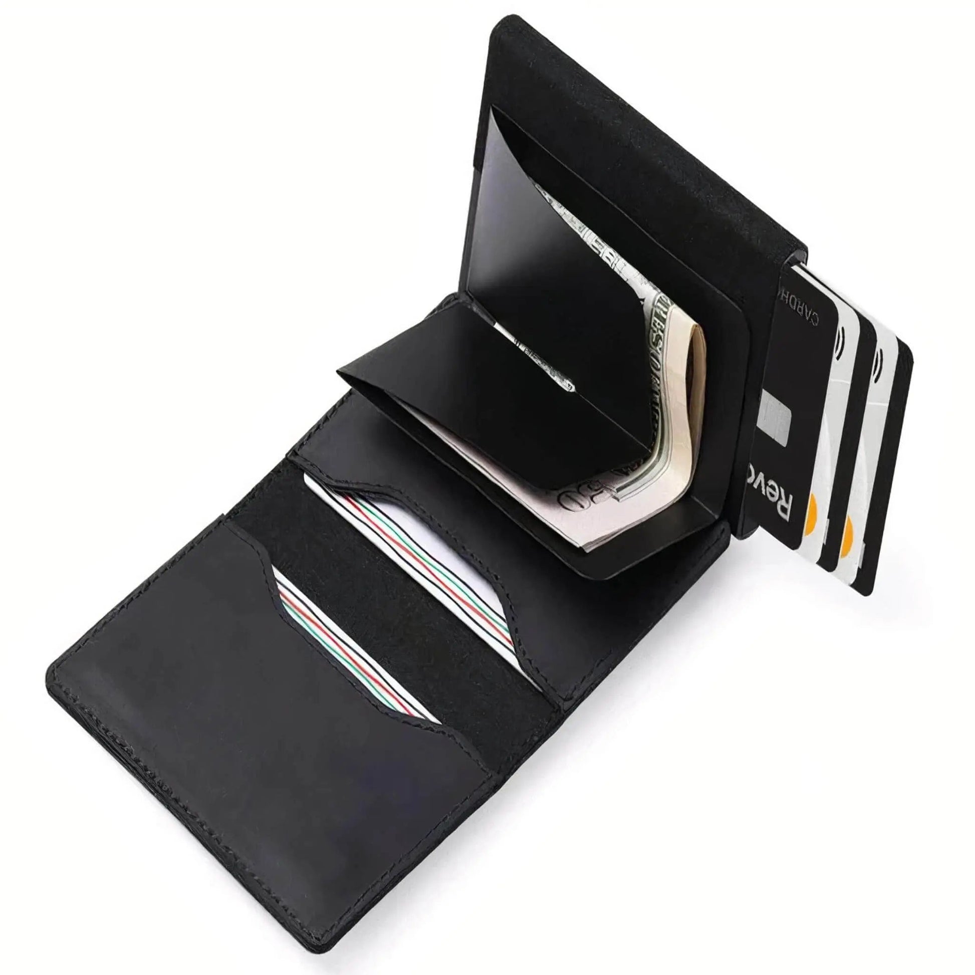 Upgrade your wallet game with Eluroa' Premium AirTag Leather Wallet. Designed with the latest technology, this wallet is the perfect companion for your Apple AirTag. Never lose your wallet again, as you can quickly locate it with just a tap of your iPhone using the Apple Find My app. With the pop-up quick card access, you can have your cards in hand in no time. Our wallet also offers RFID protection, ensuring the safety of your sensitive information. Store up to 12 cards in our hand-crafted, stylish, secure AirTag Premium Wallet from Eluroa.